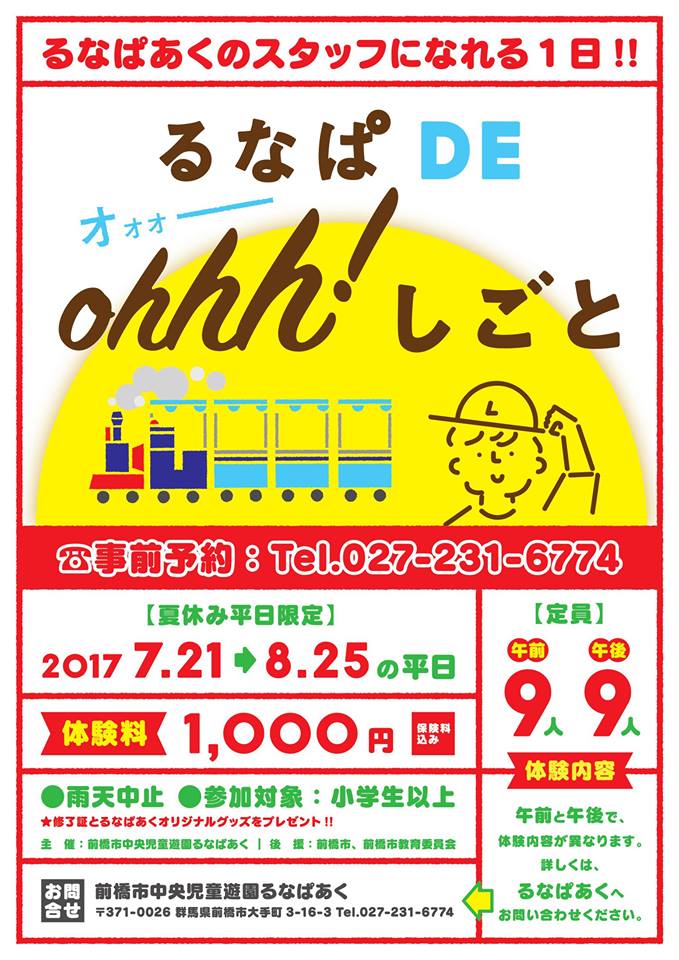 にっぽんいちなつかしいゆうえんちでお仕事体験ができます! 開催日時は7月21日(金)~ 8月25日(金) 夏休みの思い出作りにいかがですか? 事前予約制なので早めに行動を!!! 詳しい情報は公式ホームページでcheck! http://lunapark-maebashi.com/info.php?y=2017&m=06&i=60